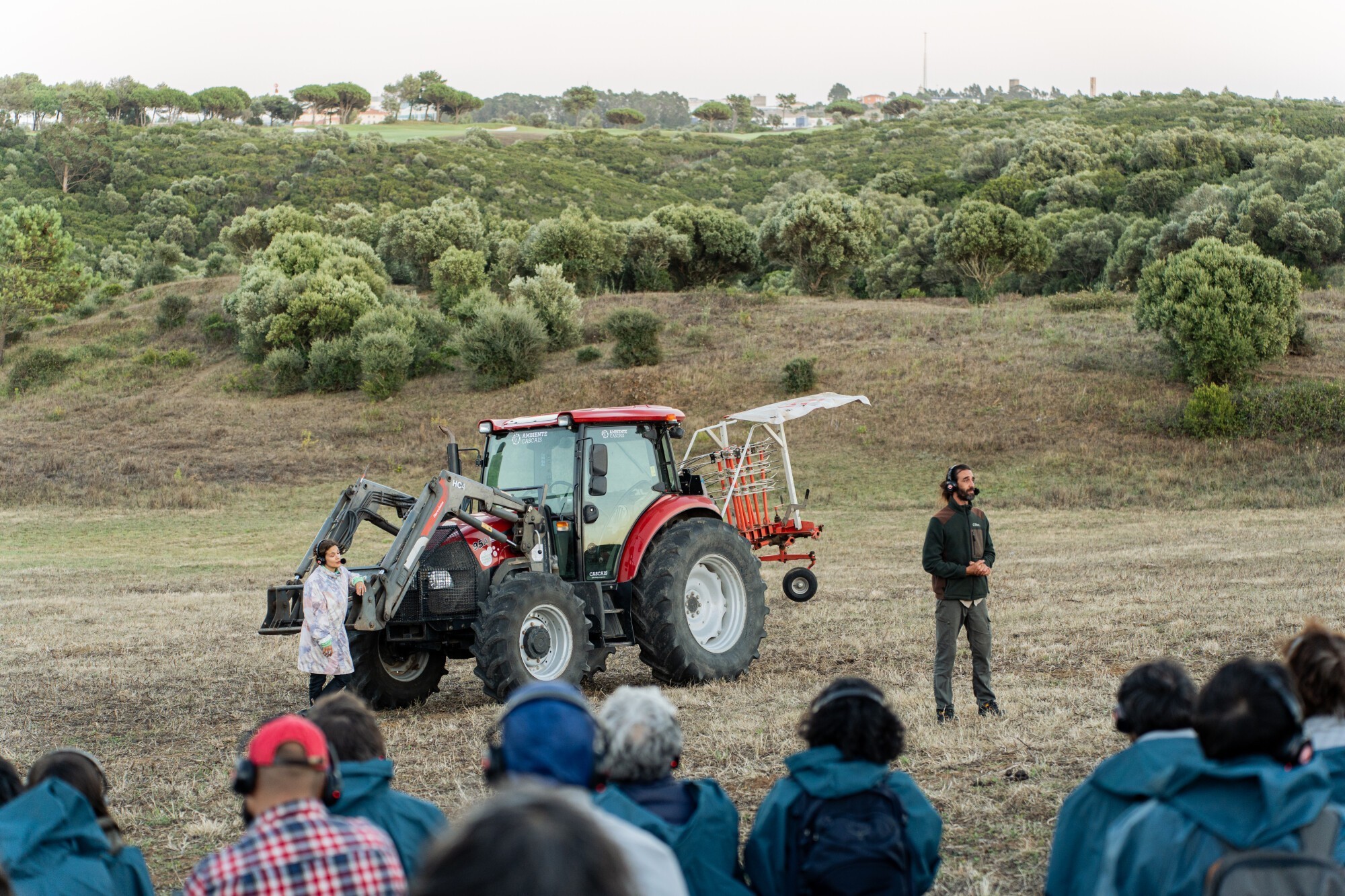 Des vies se racontent, avec leur histoire, leurs expériences, leur expertise et leurs outils : tracteurs, lois ou capteurs de sons… Chacun·e à sa manière est lié·e à ce pré qui s’étend devant nous sur des centaines de mètres et où l’écriture théâtrale compose avec l’imprévu, la course du soleil, les habitants humains et non-humains, et même la pluie qu’on se surprend à accepter.