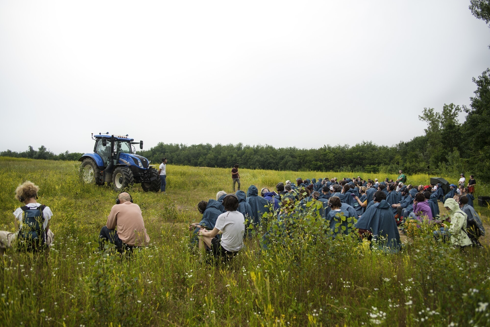 Le public est invité à rejoindre une ferme à la périphérie de la ville. Les spectateur·ices s’installent face à un champ qui devient l’objet de l’attention collective propre au théâtre. Émilie Rousset travaille à partir d’enquêtes, d’interviews, d’archives qu’elle met en jeu dans des dispositifs théâtraux ou installatifs où des acteur·ices incarnent ces paroles. Cette fois, c’est en plein champ qu’elle nous invite à écouter les propos d’une lobbyiste active dans le domaine de l’agriculture et de l’écologie, les recherches d’une bioacousticienne, ses échanges avec des agriculteur·ices européen·nes, locaux et locales.