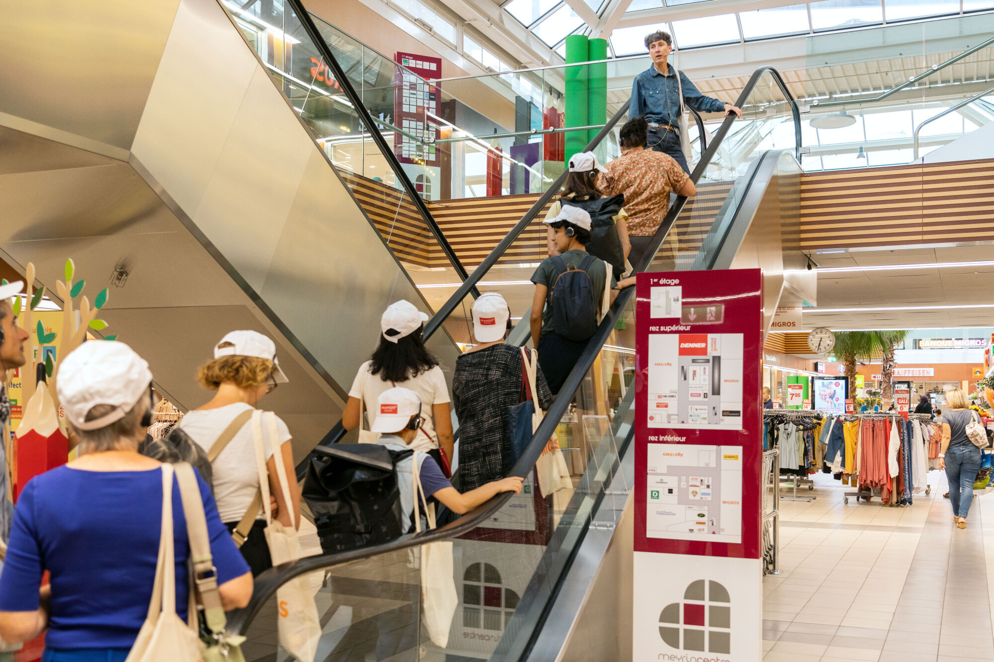 Les spectateur·ices sont invité·es à réaliser un parcours dans une banque, un bureau administratif ou un centre commercial, à la manière d’une balade touristique sur un site archéologique. Ces espaces fonctionnels sont quasi-invisibles dans les villes.