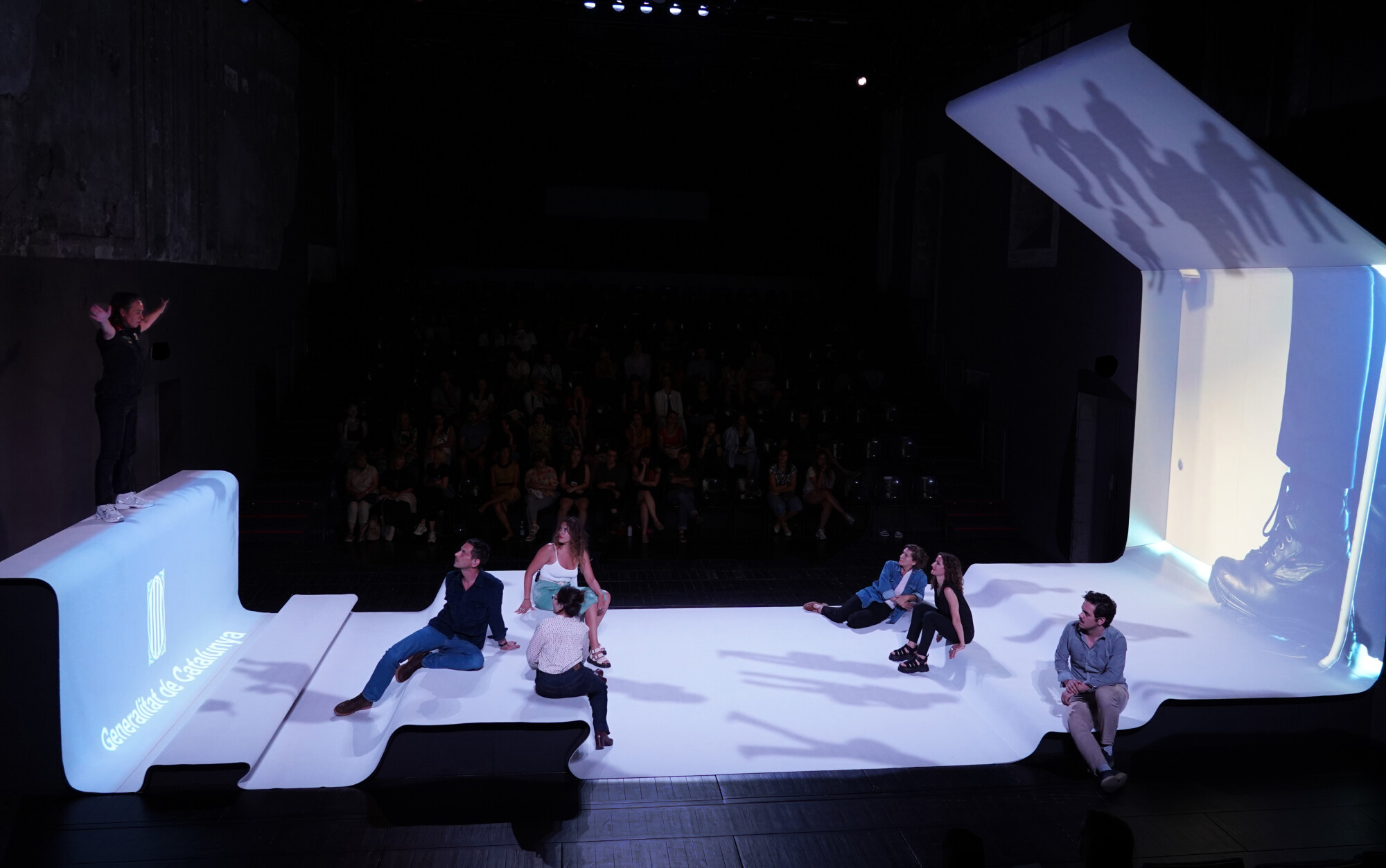 Sur scène, sept acteur·ices européen·nes rejouent ces rencontres : une avocate spécialisée dans les enlèvements d’enfants, une avocate experte en droit des familles LGBT, le père italien d’un enfant né par GPA, une policière catalane des Mossos d’Esquadra, des dénonciations d’incestes réduites au silence, des victoires devant la Cour européenne des droits de l’homme... Fidèle à sa démarche, Émilie Rousset joue des juxtapositions et décalages entre le document et sa représentation dans un dispositif scénique qui met en perspective projection vidéo, jeu d’acteur·ices et regard du public. Elle nous invite au plus près de ces dossiers où chaque situation jugée met au défi la justice et interroge notre société tout entière.